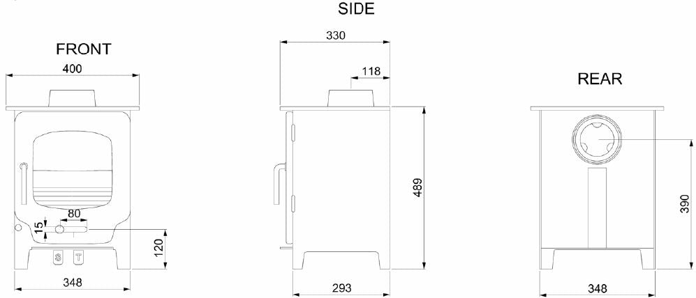Distance to Combustibles: 400mm to sides 500mm to Rear