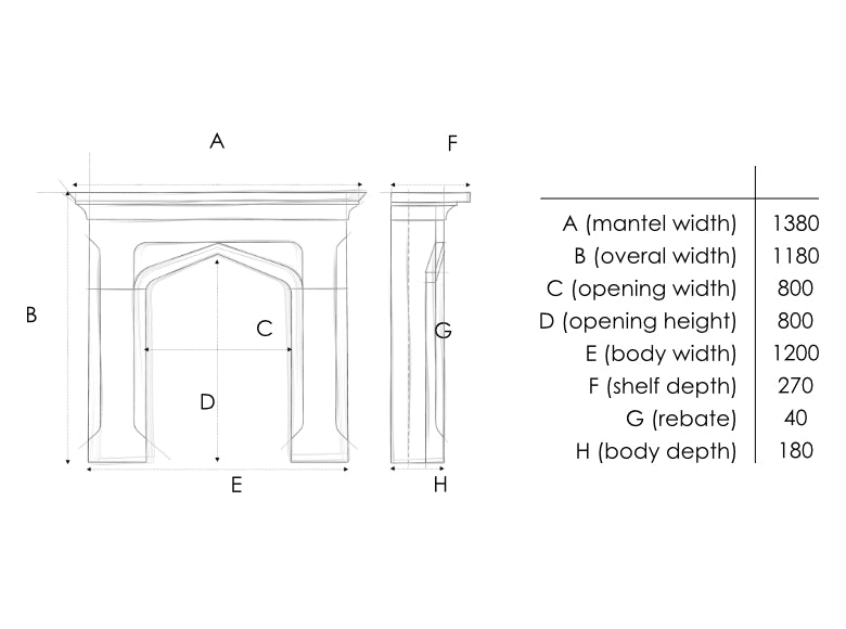 All our fireplaces, including the Chester, come with a standard 40mm rebate. For bespoke requirements, we can accommodate custom designs—simply provide us with a detailed drawing.